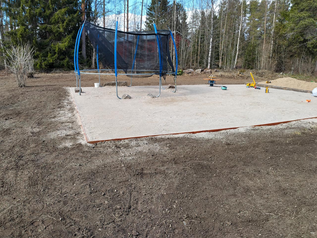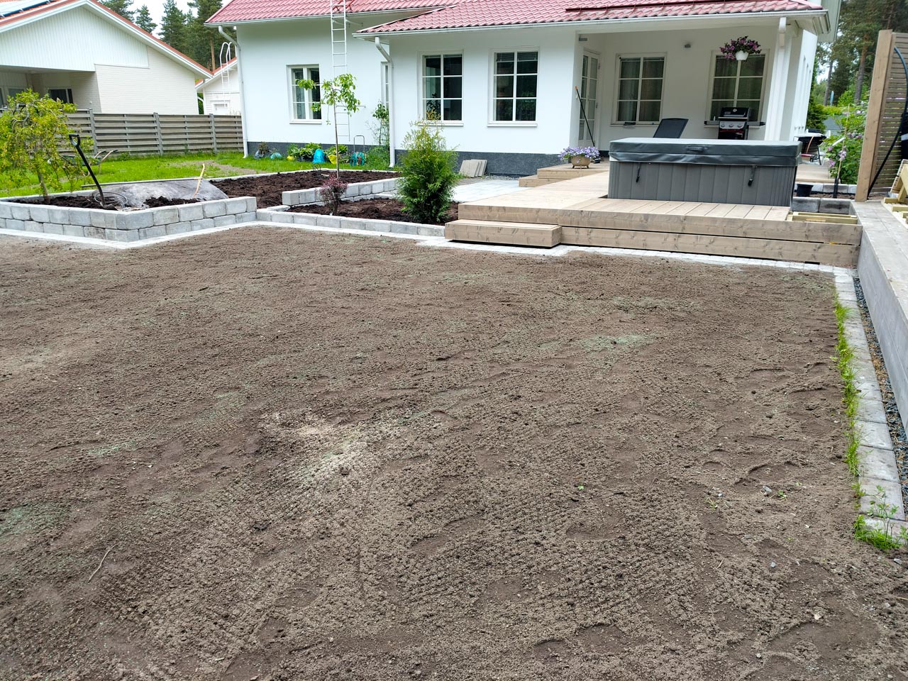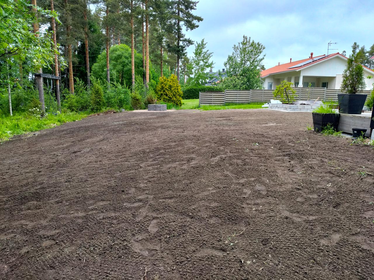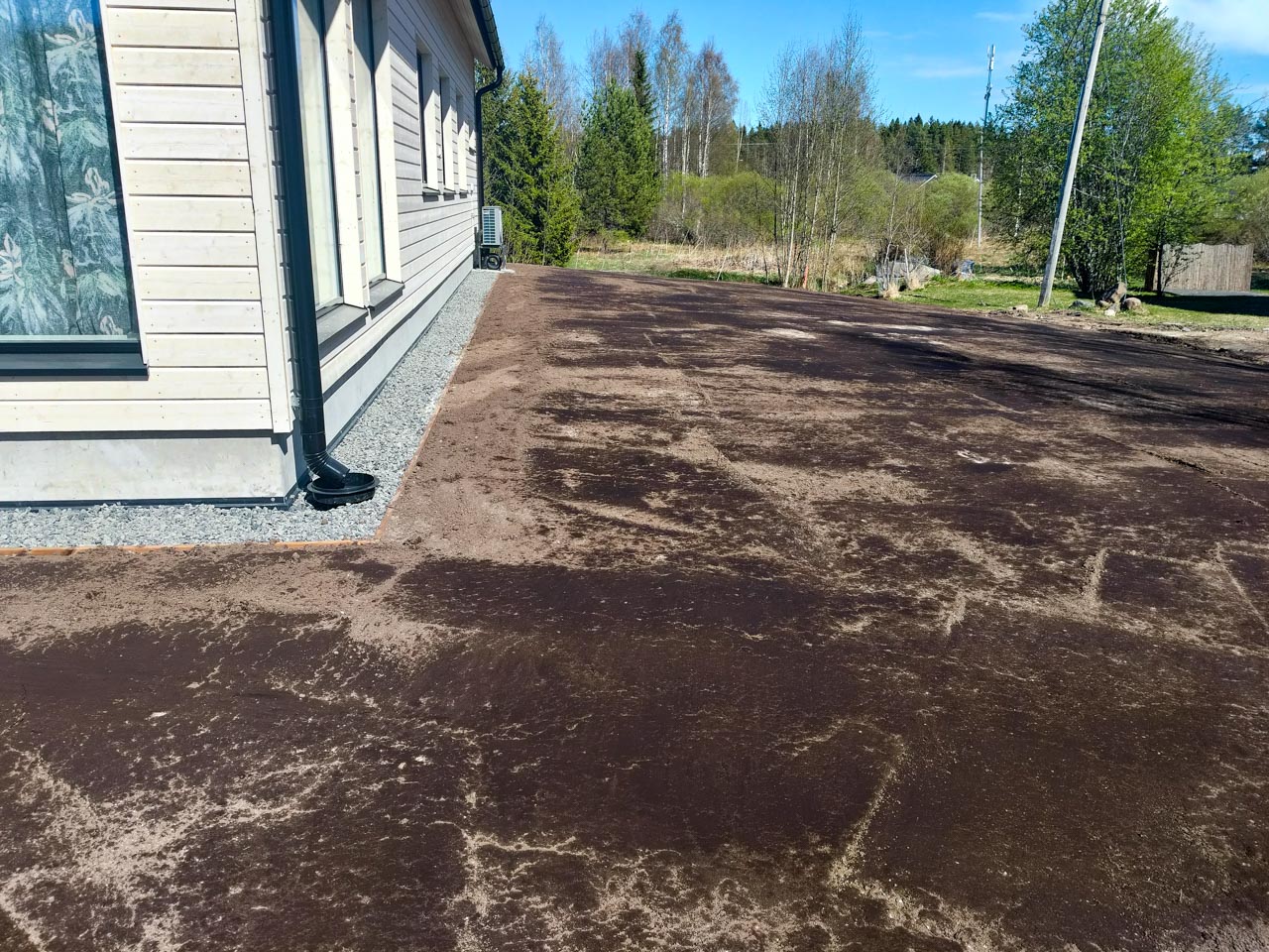 Asiakkaalla oli toiveena saada tilaamansa multa suoraan takapihalleen, nurmialueen toiselle puolen. Toive tietysti toteutettiin!