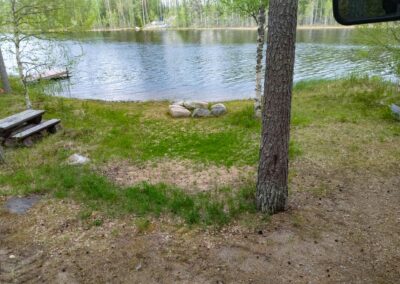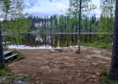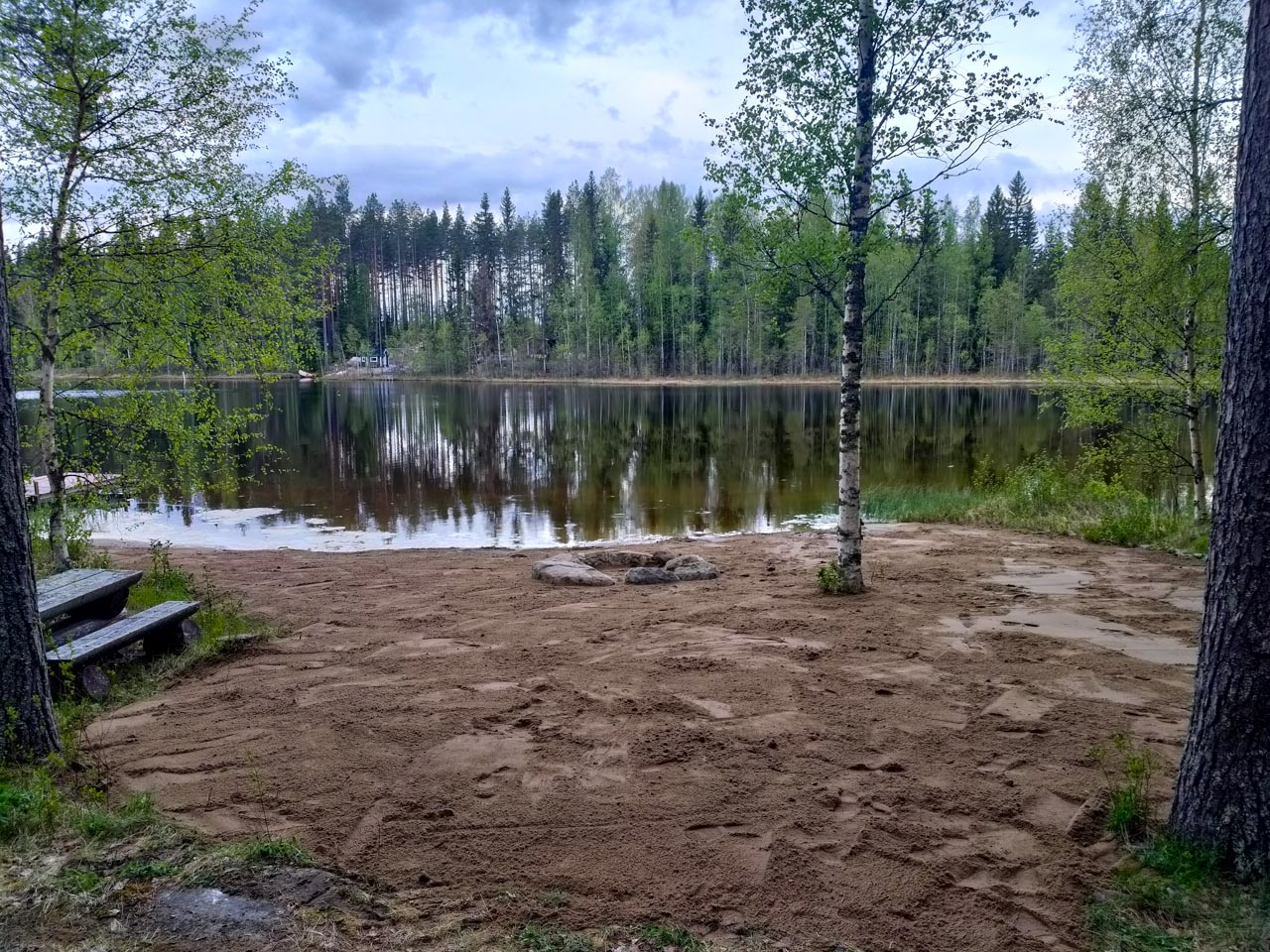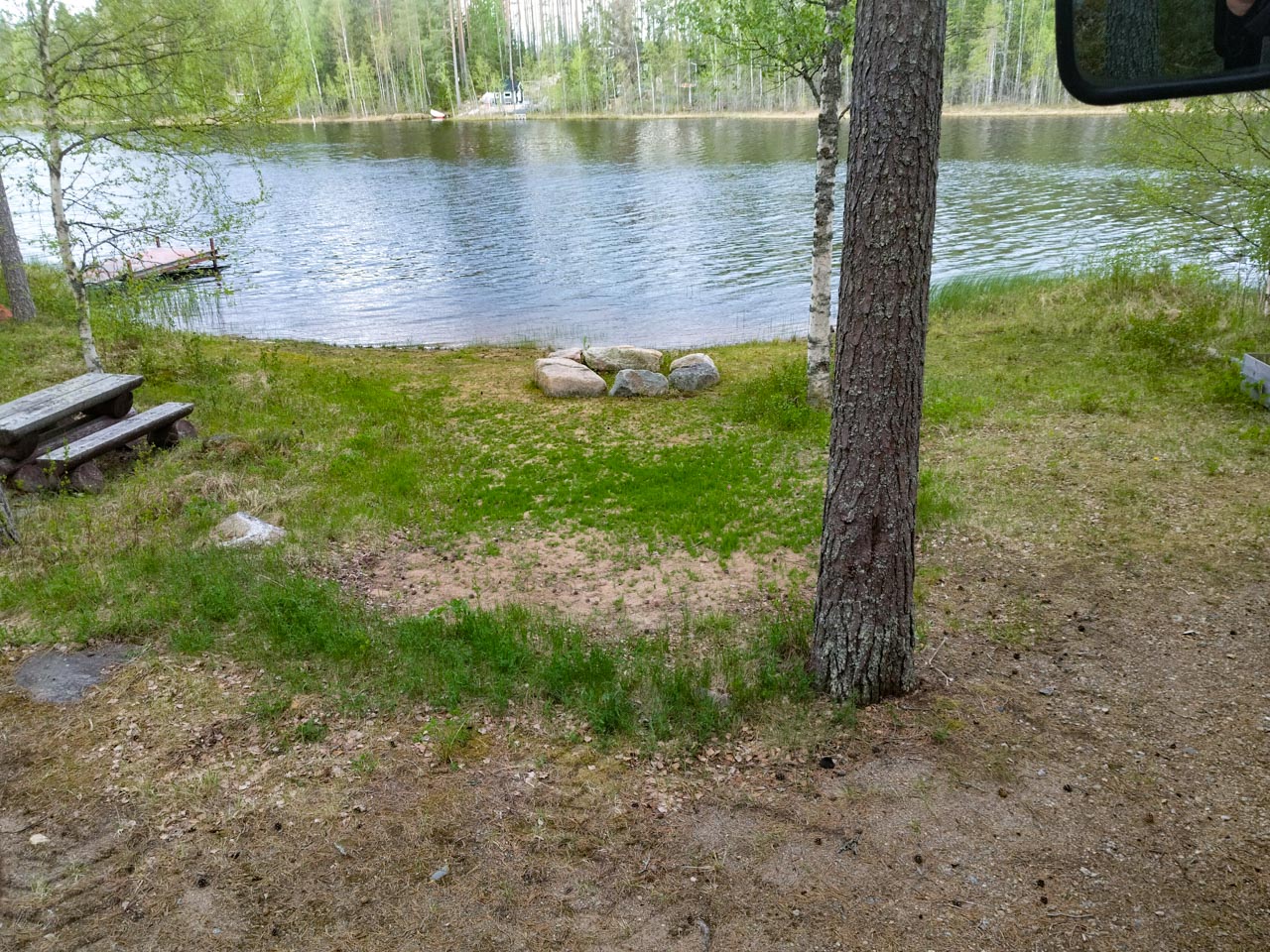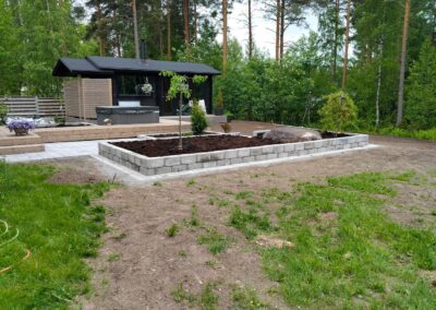 Vanhan pihasaunan edusta tuunauksen jälkeen. Seulanpääkivet on aseteltu, kivituhka levitetty ja piha siistitty.